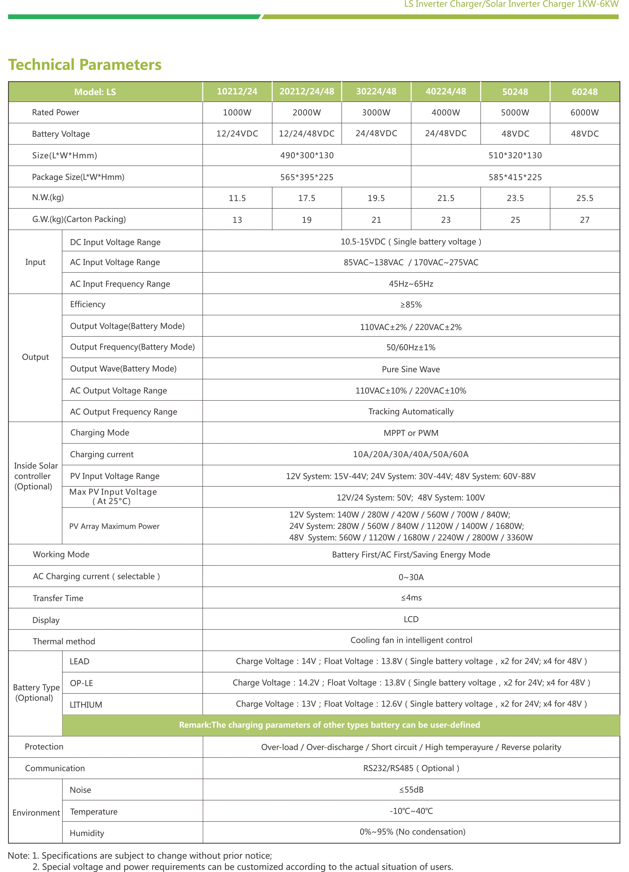 hybrid pure sine wave 3KW controller inverters 110V 220V 3000W solar inverterSpecifications